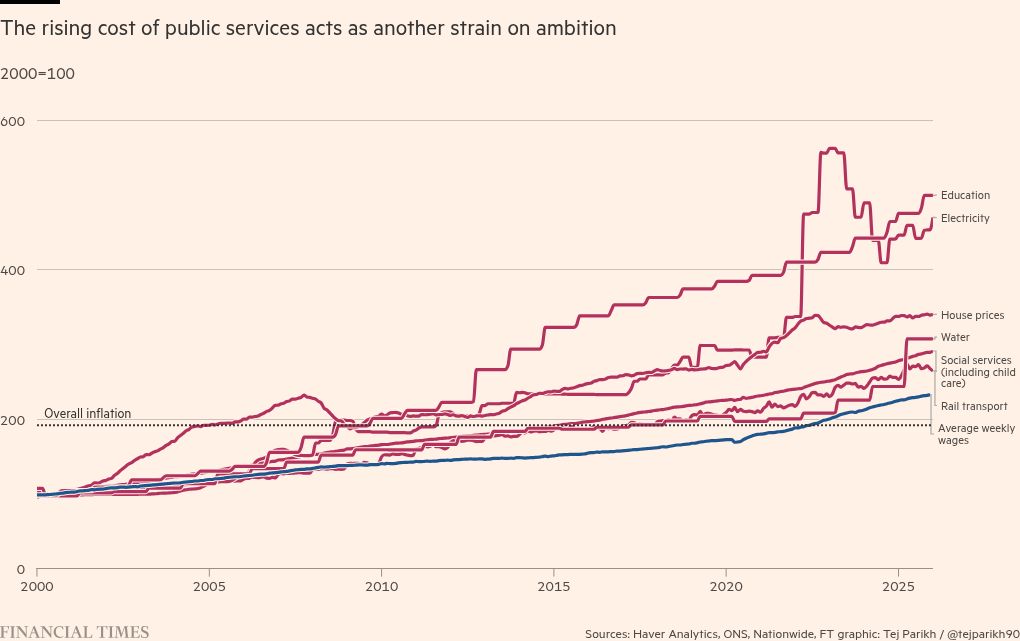 More than 70 per cent of Britons in a 2024 poll said UK public services fail to meet their expectations. The cost of essentials and infrastructure linked to state policies — including electricity, rail and housing — has surged relative to the average wage over the past two decades. In particular, the UK ranks among the most expensive in the developed world for childcare costs, which helps explain the strong incentive for families to reduce their earnings and hours to retain subsidised child support.