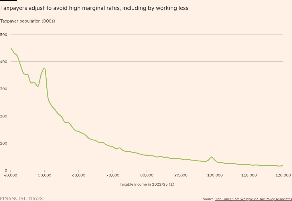 These disincentives are exacerbated by a longstanding freeze on personal tax thresholds, a policy brought in under the Conservative government and since continued by Labour. As a result, the Office for Budget Responsibility estimates that 5.4mn additional people will be pulled into the higher- and additional-rate tax bands by 2030. (For measure, if the punitive £100,000 income threshold had risen in line with inflation, it would instead kick in at around £155,000.)